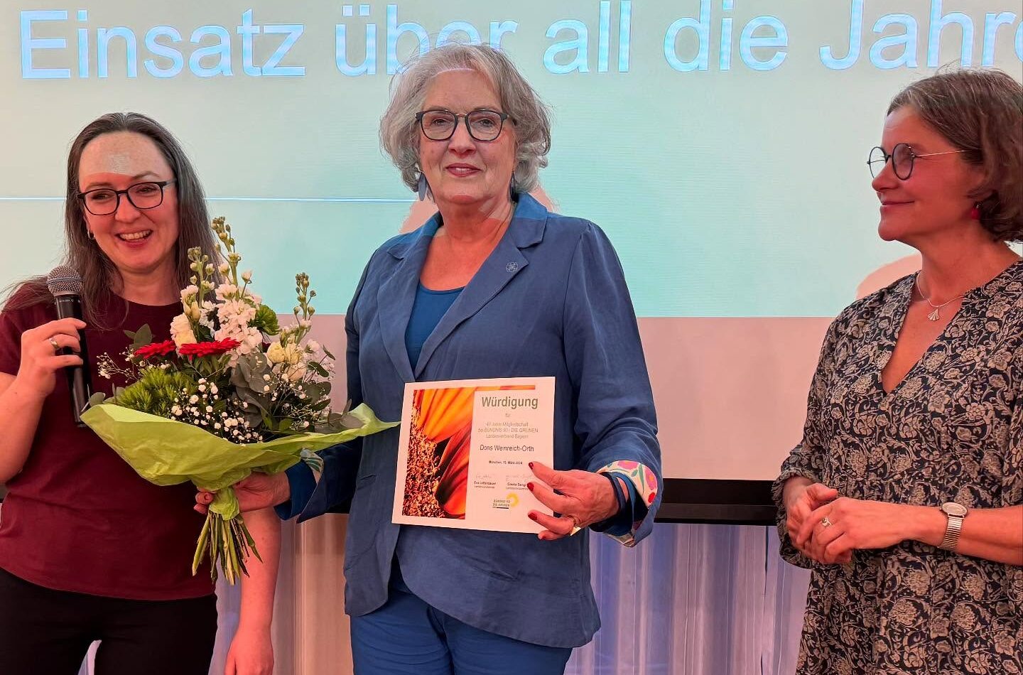 Ehrung für langjährige Mitglieder durch unseren Ortsvorstand-Beisitzerin Hanne (links) und Ortssprecherin Claudia (rechts)