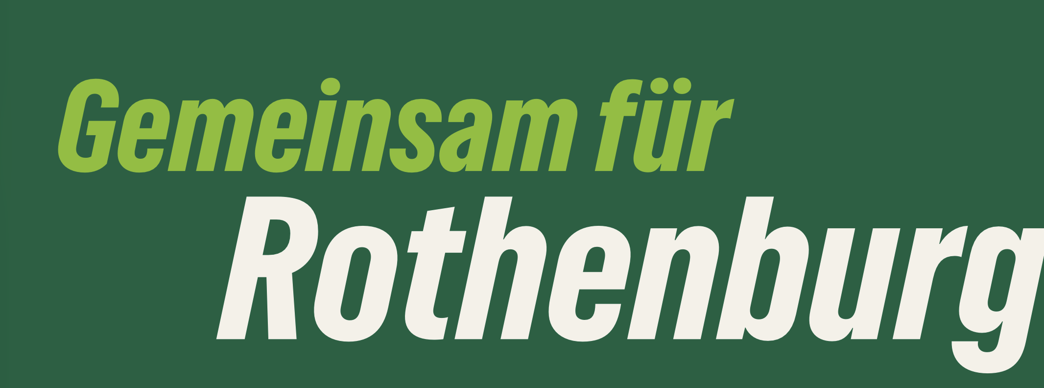 unsere Stadt ist ein Ort mit Geschichte und riesigem Potenzial. Unter dem Motto „Gemeinsam für Rothenburg“ möchten wir eine Stadt gestalten, die ökologisch blüht, sozial zusammenhält und wirtschaftlich mutig voranschreitet. Wir setzen uns für klimagerechte Entscheidungen, bezahlbaren Wohnraum und eine lebendige Demokratie ein – für ein Zuhause, in dem sich alle Generationen wohlfühlen.
